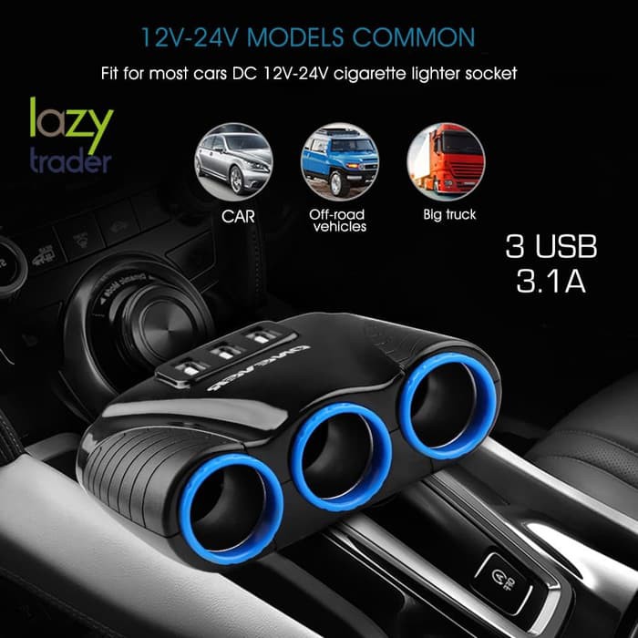 Terbaik Charger Mobil 3 Soket Lighter Lighter Socket 3 Usb 12v 24v Pp Shopee Indonesia
